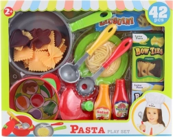 Amuzant set de bucătărie din plastic pentru micii bucătari de la 2 ani. Conține oală cu capac, tigaie, farfurie, polonice, paste și alte accesorii pentru joacă creativă. Susține dezvoltarea motricității fine, jocul de rol și distracția în bucătăria pentru copii.