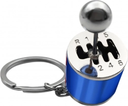 Breloc metalic stilat în formă de cutie de viteze manuală cu cap de schimbător mobil, o bucurie pentru șoferi și fanii auto. Are construcție integral metalică, durabilă, prindere comodă pe inel și servește și ca accesoriu antistres datorită schimbării realiste R–1–6.