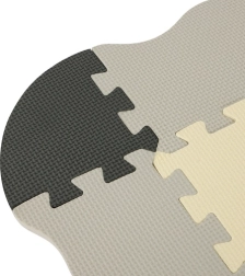 Puzzle-ul din spumă KRUZZEL este ideal ca zonă de joacă sigură pentru camera copilului, grădiniță sau spații de joacă. Materialul EVA este fără BPA, ftalați și formamidă și respectă certificările CE și EN71, fiind astfel potrivit și pentru cei mai mici. Grosimea de 1 cm oferă izolație excelentă față de podea și o aterizare moale în timpul jocului.