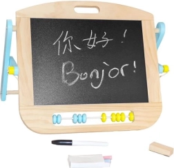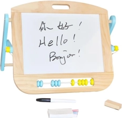 Tabla de birou multifuncțională este un instrument excelent pentru primele desene, scriere și învățare. Datorită celor două suprafețe, copiii pot trece ușor de la desenul cu marker la cel cu cretă, își antrenează motricitatea fină și își dezvoltă imaginația. Abacul bicolor integrat sprijină abilitățile matematice timpurii.