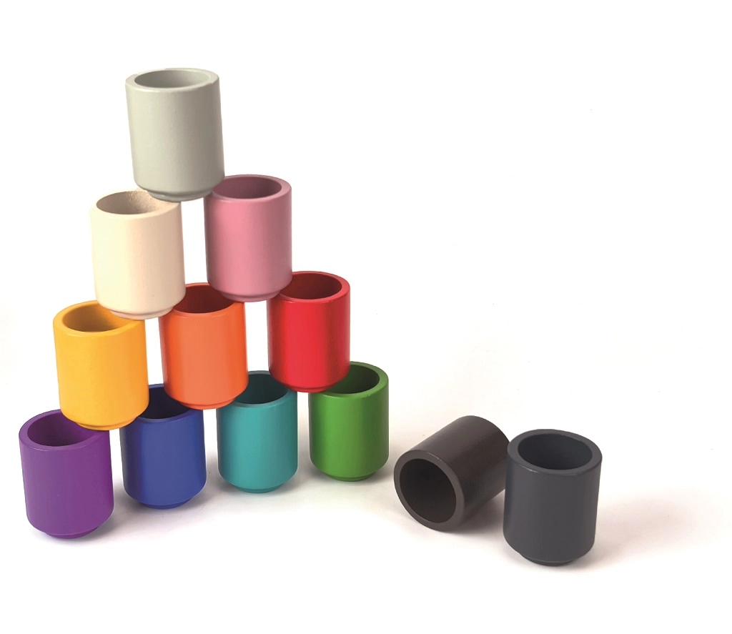 Setul în 12 culori ale curcubeului sprijină recunoașterea și asocierea culorilor, abilitățile prematematice și concentrarea.