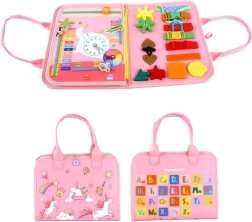 Descoperă magia învățării prin joc cu cartea senzorială busy cu motiv unicorn, care aduce copiilor distracție și dezvoltarea motricității fine. Cartea oferă nasturi, catarame, fermoare, arici și șireturi, susține gândirea logică, concentrarea și percepția senzorială. Este moale, ușoară și grozavă ca cadou pentru copiii de la 3 ani în sus.