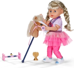 Setul BABY born pentru hobby horsing le permite păpușilor să intre în trendul curselor cu căluțul pe băț. Capul moale din pluș al căluțului este sigur și plăcut la atingere, fiind perfect pentru plimbări zilnice și probe de concurs. Antrenamentul distractiv este asigurat de simpatica rățușcă Berta, care adaugă jocului un caracter jucăuș.