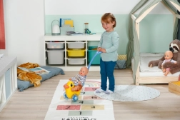 Roțile transparente zornăitoare cu mărgele adaugă un efect sonor distractiv la deplasare și stimulează percepția senzorială. Sub scăunel se află un compartiment secret pentru mărunțișuri, datorită căruia fiecare plimbare devine și mai aventuroasă. Construcția de calitate garantează joacă îndelungată plină de imaginație.