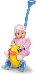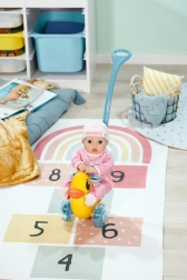 Bucurați-vă de plimbări distractive cu păpușa datorită împingătorului Berta de la BABY BORN. Oferă o bară de ghidare ajustabilă, un spătar reglabil și roți transparente zornăitoare pline cu mărgele. Scăunelul este universal pentru toate păpușile BABY BORN și încântă cu un compartiment secret pentru micile comori.