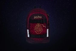 Material reciclat, rezistent la apă, elemente reflectorizante și fermoare YKK fiabile, completate de designul HOGWARTS cu chingi pentru skateboard și breloc stilat.