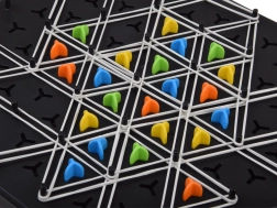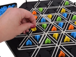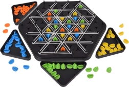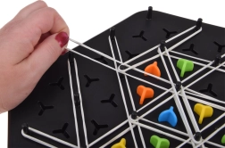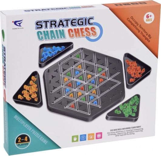 Șahul în lanț este un joc de societate original în care jucătorii întind pe rând elastice colorate între stâlpii de pe tablă. Fiecare elastic nou trebuie să fie în linie dreaptă, să atingă cel puțin unul deja plasat și să intre într-o coloană nouă a tablei. De îndată ce închizi un triunghi, îl marchezi cu propriul jeton. Jocul se încheie când nu mai poate fi creat niciun triunghi nou – câștigă jucătorul cu cel mai mare număr de forme ocupate.