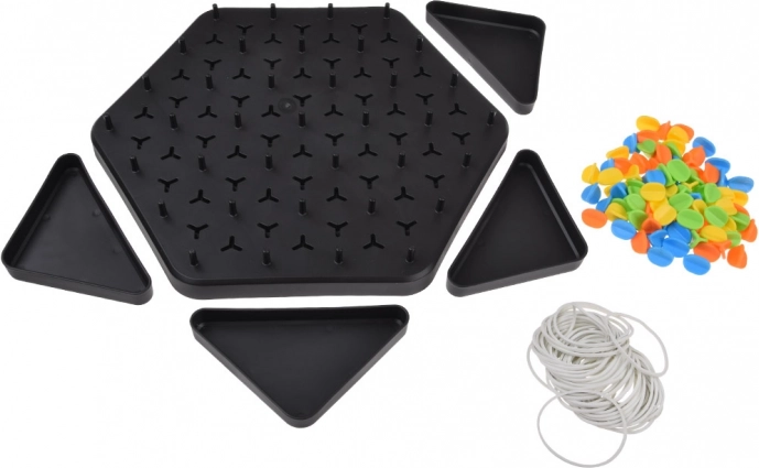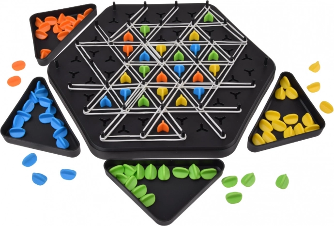 Un joc strategic inteligent și palpitant pentru copii și adulți, în care, folosind elastice întinse între stâlpi, creezi și ocupi triunghiuri. Câștigă cel care obține cele mai multe. Jocul dezvoltă gândirea strategică, planificarea spațială și motricitatea fină și este ideal pentru 2–4 jucători de la 6 ani.
