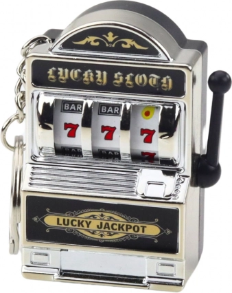 - breloc pentru chei – mini automat de cazinou (slot machine)