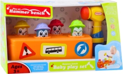 Ciocănelul interactiv în stil „lovește cârtița” îi motivează pe copii la joacă activă. Capetele colorate se aprind după lovire și se aud efecte sonore vesele, care stimulează percepția senzorială și concentrarea. Datorită mânerului practic, ciocănelul poate fi depozitat ușor la locul lui după joacă.