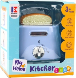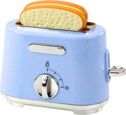 Prăjitor de pâine pentru copii, distractiv, în design modern albastru‑argintiu, oferă un joc de gătit realist. Datorită funcției de felii săritoare imită un aparat real, dezvoltând creativitatea, motricitatea fină și imaginația. Ușor și compact, ideal pentru bucătăria de jucărie și pentru călătorii.