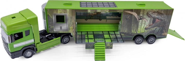 Bucurați-vă de ore de distracție cu un autocamion realist cu mers liber, cu motiv de dinozaur. Combinația de metal și plastic asigură o construcție solidă, iar lungimea de aprox. 32 cm va încânta orice mic șofer. Partea rabatabilă deschisă cu scări glisante adaugă și mai multe posibilități de joacă, inclusiv încărcare și descărcare.
