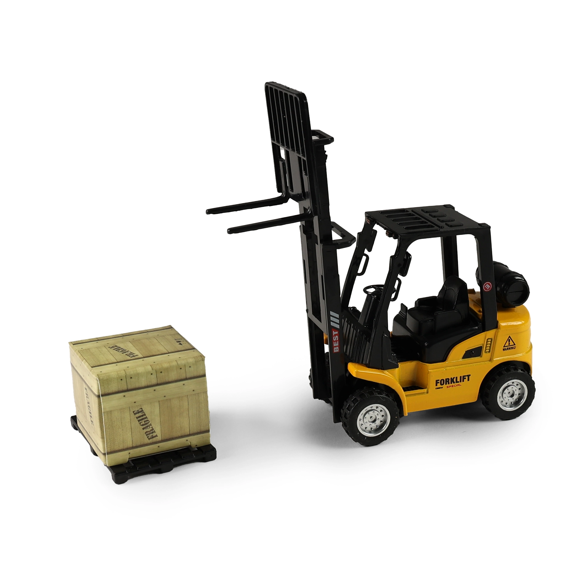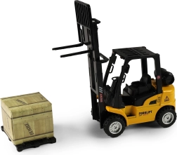Acest model de stivuitor, realizat cu atenție la detalii, este ideal pentru colecția copiilor de utilaje de lucru și de construcții. Datorită mecanismului pull-back, este suficient să tragi jucăria înapoi, iar stivuitorul pornește singur înainte. Furca mobilă permite încărcarea și descărcarea realistă.