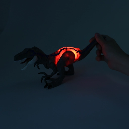 Descoperă joaca plină de suspans cu dinozaurul Velociraptor realist, care oferă efecte luminoase și sonore, părți mobile și control interactiv. Este suficient să apeși coada sau capul, iar jocul prinde viață cu un urlet înfricoșător, lumină și mișcare.