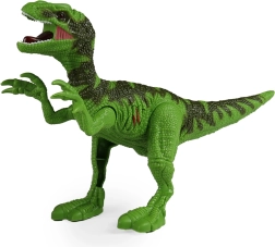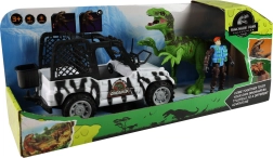 Pornește în lumea aventurilor preistorice. Mașina de teren cu lungimea de 21 cm rulează cu roți libere, fiind ideală pentru curse rapide în cameră sau în grădină. Dinozaurul realist impresionează prin efecte luminoase și răget, activate prin apăsarea unui buton, iar membrele sale mobile sporesc autenticitatea.