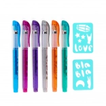 Acest set de tatuaje este o alegere excelentă pentru creatori mici și mari. În pachet găsești șase pixuri gel în culori vii – roz, albastru, mov, verde, portocaliu și argintiu. Fiecare pix este ușor parfumat, oferind nu doar o experiență vizuală plăcută, ci și una olfactivă în timpul desenului. Cele două șabloane incluse, cu diverse motive, te ajută să creezi cu ușurință modele precise și atrăgătoare fără experiență anterioară.