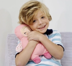 Păpușa drăgălașă din material textil SQUISHBABIES cu înălțimea de 30 cm este ideală pentru îmbrățișat și joaca de zi cu zi. Corpul moale, materialul plăcut și trei variante de culoare vor încânta orice copil.