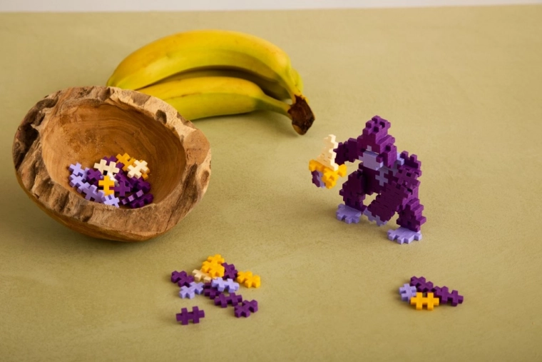 Seturile Plus-Plus oferă un sistem unic de piese care se îmbină perfect și permit crearea de modele plane și 3D. Setul tematic gorilă în tub compact include 100 de piese și instrucțiuni clare, astfel încât copiii pot construi ușor o figurină realistă.