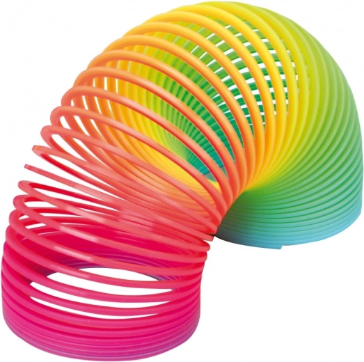 Descoperă distracția cu jucăria clasică – arc curcubeu din plastic în stilul legendarului Slinky. Se rostogolește grozav pe scări, se leagănă pe masă și oferă joacă nesfârșită în mână. Susține motricitatea fină, coordonarea mișcărilor și răbdarea.