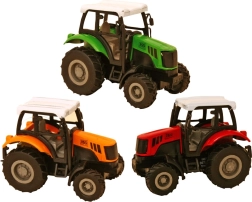 Un tractor metalic robust, de dimensiuni mici cu mecanism de întoarcere (pull-back) care va încânta toți micii pasionați de utilaje agricole. Doar trage-l înapoi și eliberează – tractorul pornește singur înainte. Caroserie metalică rezistentă și design detaliat în trei culori: roșu, verde și portocaliu.