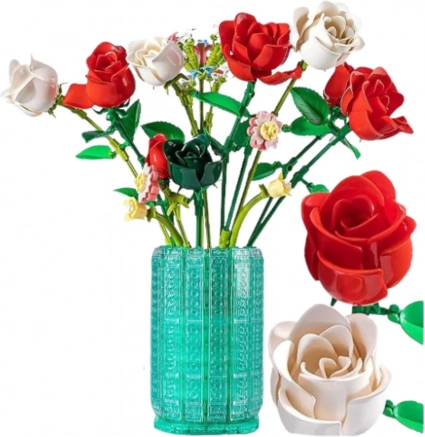 Setul elegant „trandafiri în vază” îmbină distracția creativă cu decorul interior stilat. Din 1022 piese asamblezi un buchet realist cu trandafiri roșii, albi și roz într-o vază decorativă. Modelul final, cu înălțimea de 43 cm, este rezistent, nu se ofilește și va înfrumuseța o poliță, masa sau colțul de lucru. Un cadou grozav pentru copii de la 6 ani și pentru adulții pasionați de seturi de construcție.