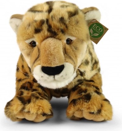Ghepard de pluș adorabil și realist, cu lungimea de 48 cm, din colecția exclusivă RAPPA, care îi va încânta pe micii și marii iubitori de animale. Este realizat din materiale de înaltă calitate, cu prelucrare manuală pentru fiecare piesă și umplutură eco prietenoasă cu mediul, din sticle PET reciclate. Este sigur chiar și pentru nou-născuți și este perfect atât ca dar, cât și ca element decorativ de design pentru camera copiilor.