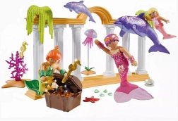 Descoperă lumea subacvatică fermecată alături de familia de sirene care caută comoara misterioasă a unui oraș scufundat. Include un delfin jucăuș cu puiul său și un cufăr plin cu aur, nestemate și accesorii – inclusiv un inel adevărat. Setul oferă detalii bogate, precum recife de corali, plante marine și creaturi adorabile, ideal pentru joacă creativă.