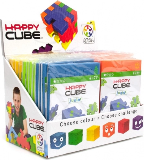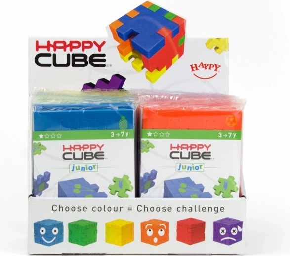 Happy Cube Junior este primul puzzle 3D ideal pentru copii de aproximativ 3–7 ani. Din șase piese asortate color vei asambla un cub perfect, apoi le vei pune înapoi în rama plată. O idee simplă care aduce multă bucurie și ajută la dezvoltarea motricității fine, a coordonării mână–ochi și a răbdării.