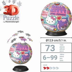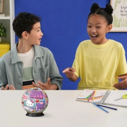 Această sferă puzzle 3D cu motiv Hello Kitty transformă asamblarea într-o decorațiune distractivă pentru camera copilului. Datorită tehnologiei EasyClick, piesele din plastic se fixează precis, iar rezultatul este o sferă solidă, netedă, cu un imprimeu de calitate.