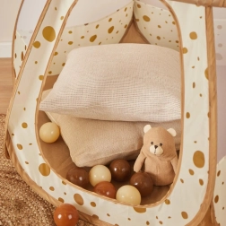 Set stilat de 100 de mingi de joacă în armonia tonurilor de ciocolată neagră și cu lapte, ciocolată albă și caramel, pentru distracție acasă și în aer liber. Puştoase, durabile și sigure, mingile fabricate în UE susțin dezvoltarea motricității fine și sunt ideale pentru colțul de joacă, bazinul cu bile, în cadă sau în grădină. Ușor de curățat, potrivite de la 12 luni.