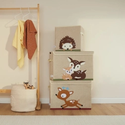 Designul adorabil cu motiv de pui de căprioară încălzește orice cameră de copii și oferă în același timp un spațiu practic pentru depozitare. Cutia este stabilă, dar ușoară, astfel încât atât copiii, cât și părinții o pot transporta ușor. Construcția pliabilă economisește spațiu, iar capacul cu arici păstrează conținutul frumos ascuns.