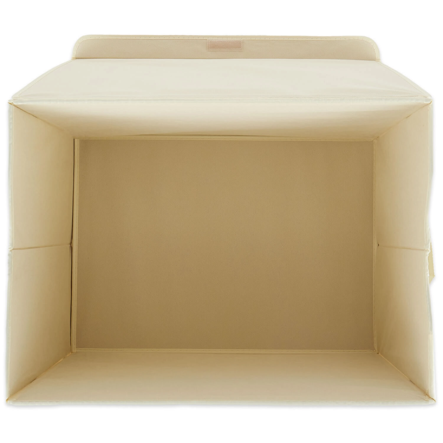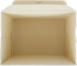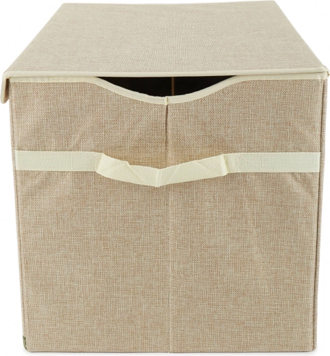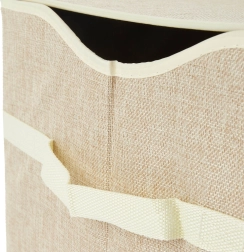 Datorită mânerelor laterale, cutia se manevrează ușor, iar când nu aveți nevoie de ea, o pliați simplu și o depozitați în dulap. Materialul exterior cu aspect de in are un aer elegant și se potrivește majorității interioarelor camerelor de copii.