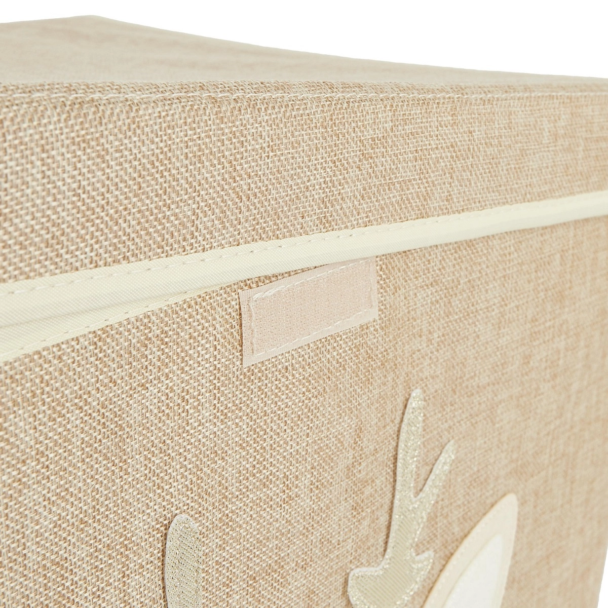 Bucurați-vă de o cameră de copii ordonată și primitoare cu cutia de depozitare Căprioară Ella. Cutia cu design decorativ are capac rabatabil cu bandă velcro, astfel încât conținutul rămâne la un loc și ferit de priviri. Volumul de aproximativ 65 de litri oferă mult spațiu pentru plușuri, cuburi, cărți și haine de sezon.