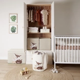Coșul de depozitare Bieco, practic și stilat, cu motiv cu pui de căprioară, aduce ordine în camera copilului în câteva clipe. Este fabricat din material textil rezistent, are formă stabilă, mânere lungi pentru transport facil și datorită căptușelii interioare din PE impermeabil poate fi folosit și ca coș pentru rufe. Cu un volum de 38 l oferă suficient spațiu pentru jucării, rufe și accesorii, iar când nu este folosit se poate plia ușor.