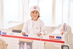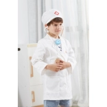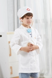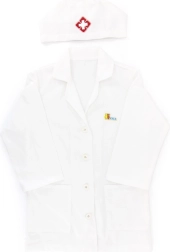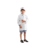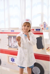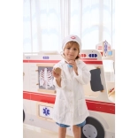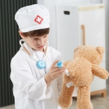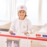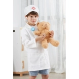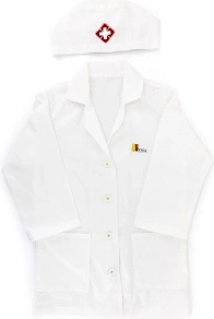 Halatul alb și boneta cu simbol medical stimulează imaginația copiilor și oferă jocului o notă realistă.