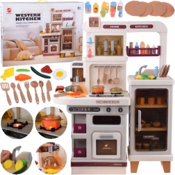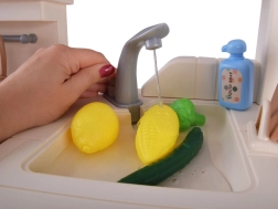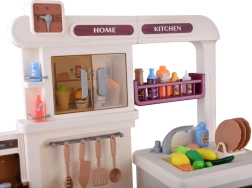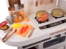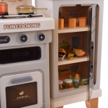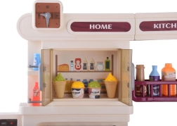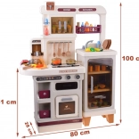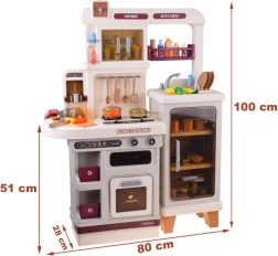 Această bucătărie interactivă spațioasă le permite copiilor să imite gătitul, coptul și spălatul vaselor. Datorită arzătorului cu abur cu lumină și sunet de fierbere, cuptorului care se deschide, rafturilor și cârligelor pentru ustensile și dispenserului de apă, jocul este maxim realist și distractiv.