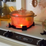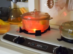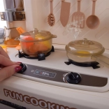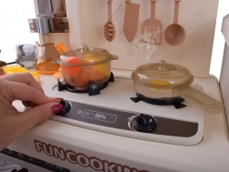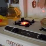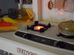 Arzătorul interactiv oferă două moduri: sunet de fierbere cu lumină sau efect de abur cu sunet. Butoanele rotative și panoul adaugă jocului un aer realist.