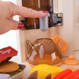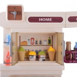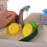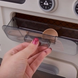 Ușițele cuptorului și ale spațiilor de depozitare care se deschid, precum și frigiderul cu alimente îi invită pe copii la servire, coacere și organizarea proviziilor.