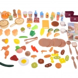- Accesorii bogate – oală cu capac, tigaie, ceainic, ustensile, veselă, fructe, legume, carne și deserturi.