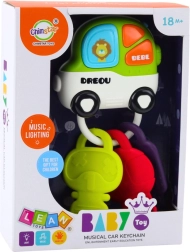 Cheițele interactive pentru cei mici combină efecte luminoase, sunete vesele, funcție de zornăitoare și jucărie de dentiție moale. Telecomanda colorată în formă de mașinuță, cu trei butoane mari, susține motricitatea fină, dezvoltarea senzorială și îi distrează pe copii acasă și în călătorii.