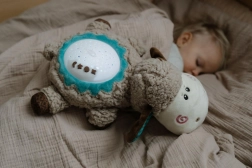 O oiță pluşată foarte moale, cu proiector integrat, îi ajută pe copii să adoarmă liniștiți. După pornire luminează delicat, proiectează steluțe pe tavan și redă melodii liniștitoare și sunete ale naturii. Pluşul catifelat și elementele din plastic sigure sunt plăcute la atingere și potrivite pentru cei mai mici. Oița creează o atmosferă relaxantă în cameră, favorizează calmarea și adormirea – un cadou ideal la naștere sau pentru noapte bună.