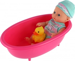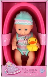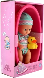 Această păpușă adorabilă este pregătită pentru orice aventură la băiță. Așezată în cădița ușoară din plastic, cu rățușcă galbenă, îi motivează pe copii să se joace creativ de-a îngrijirea bebelușului, să învețe rutine și să-și dezvolte abilitățile sociale.