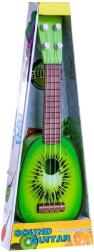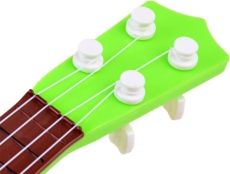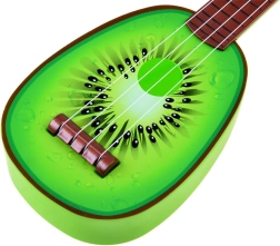 Ukulele drăgălaș pentru copii, din plastic ușor, care îi va încânta pe micii muzicieni. Are 4 corzi cu gât reglabil, dimensiuni compacte de 37 cm și un fermecător motiv cu fructe care invită la joacă și dezvoltă baza simțului ritmic și muzical.