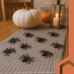 Set de zece păianjeni realiști din plastic ușor și rezistent, de culoare neagră. Ideali pentru Halloween, petreceri tematice, decorarea interiorului și a grădinii. Arată natural, îi poți așeza cu ușurință pe masă, pe podea sau în pânze de păianjen și creezi instant o atmosferă de tensiune și surpriză.