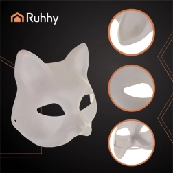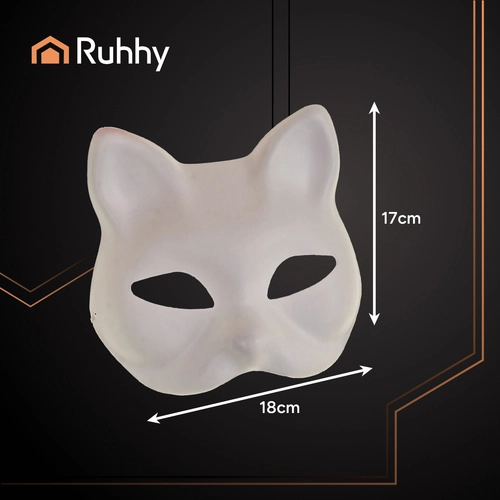 Măști albe în formă de pisică pentru decorare proprie – set practic de 10 bucăți de la RUHHY. Ideale pentru carnaval, Halloween, ateliere și evenimente tematice. Datorită benzilor elastice sunt confortabile de purtat, stau stabil pe față și au suprafață netedă pregătită pentru tehnici DIY creative.