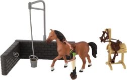 Pornește la țară și ai grijă de propriul tău căluț! Acest set include un cal din plastic și accesorii practice pentru jocul de-a ferma. Datorită lui, copiii se pot familariza cu lumea fermei, învăța bazele îngrijirii animalelor și în același timp dezvolta empatia și imaginația. Totul este depozitat într-o cutie cadou colorată, ideală pentru micii iubitori de cai.