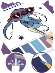 Set creativ distractiv pentru micii artiști: bloc spiralat cu douăzeci de planșe de colorat din lumea Lilo și Stitch, completat cu 6 culori și o pensulă pentru pictat imediat, acasă sau în călătorii.