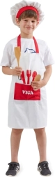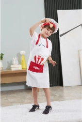 Costum stilat de bucătar pentru copii, pentru micii gurmanzi cu vârsta de 3–6 ani. Setul include halat și bonetă de bucătar, ideal pentru jocuri de rol, grădiniță și aventuri culinare acasă. Halatul, cu dimensiuni de aproximativ 45,5 × 53 cm, este confortabil și ușor de îmbrăcat.