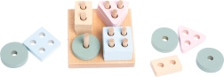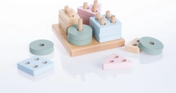 Puzzle-ul din lemn CUBIKA Pastel sortare forme IV este un instrument ideal pentru primele învățări. Copiii așază 16 forme geometrice perforate pe baza pătrată, exersând în mod natural diferențierea formelor și culorilor, coordonarea mână-ochi și răbdarea. Culorile pastel sunt liniștitoare vizual și stimulează jocul.