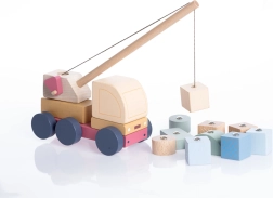 Această macara auto CUBIKA în nuanțe pastel este un excelent puzzle din lemn, care îi învață pe copii coordonarea și răbdarea într-un mod distractiv. Magnetul de pe macara prinde sigur plăcuțele metalice din cuburile încărcăturii, astfel încât copiii pot ridica și muta în siguranță piesele individuale. Datorită lemnului robust și prelucrării precise, jucăria rezistă chiar și jocului intensiv.